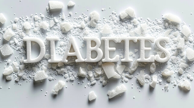 3d bold text " diabetes " written with white sugar on white background, American Diabetes Alert day is in March, is a one-day wake-up call that focuses on the seriousness of diabetes