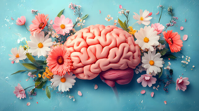 Blooming Brain: A Colorful Tribute to World Mental Health Day with Themes of Self Love and Happiness