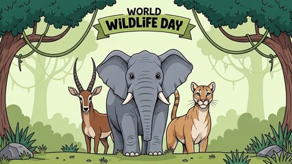World Wild life Day. March 3rd World Wildlife day celebration banner with silhouette wild animals.