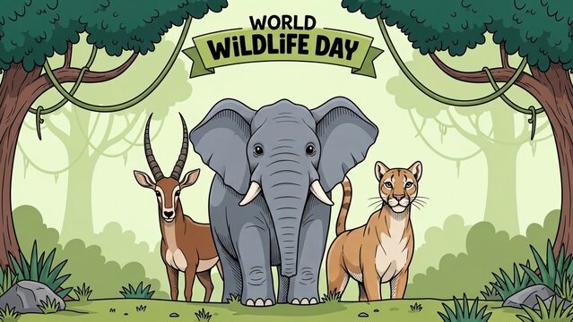 Illustration of animals for world wildlife day in cartoon style. High quality