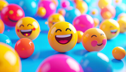 Vibrant celebration of World Emoji Day with a playful composition of 3D emoji, digital expression and communication.