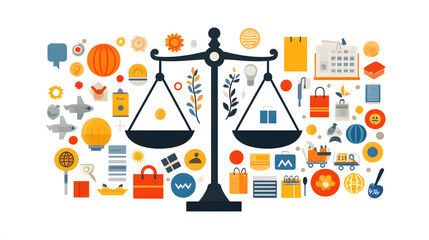 Fair trade conceptual art with scales and clouds for world fair trade day design