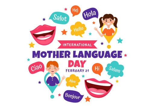 International Mother Language Day Vector Illustration on February 21 with Mom Says Hello in Several World Languages in Flat Kids Cartoon Background
