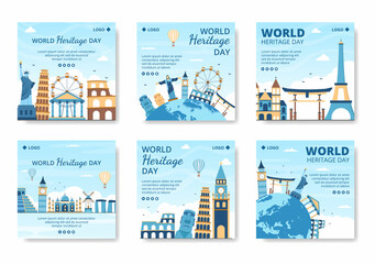World Heritage Day Post Template Flat Design Illustration Editable of Square Background Suitable for Social Media, Greeting Card and Web Ads