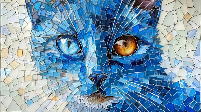 Celebrate World 's cat day diffusion distribution of blue palette colors in a cat full body mosaic portrait