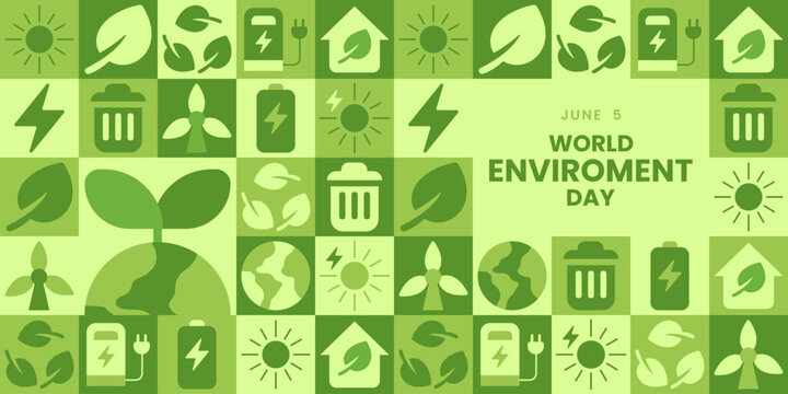 World Environment Day illustration background for web template, landing page with geometric nature mosaic