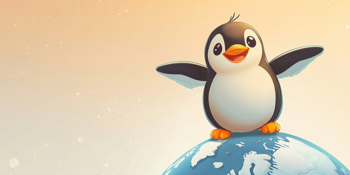 Cute cartoon penguin celebrating World Animal Day in a bright and cheerful setting