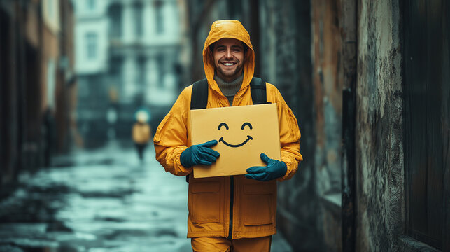 Delivering Smiles, a conceptual image of a postal worker delivering letters with smiley faces, symbolizing the joy of receiving mail, with copy space, World Post Day