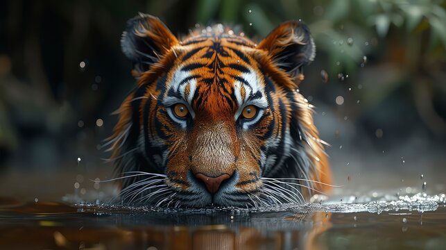 World wildlife day tiger standing on top of a green field forest background. High quality