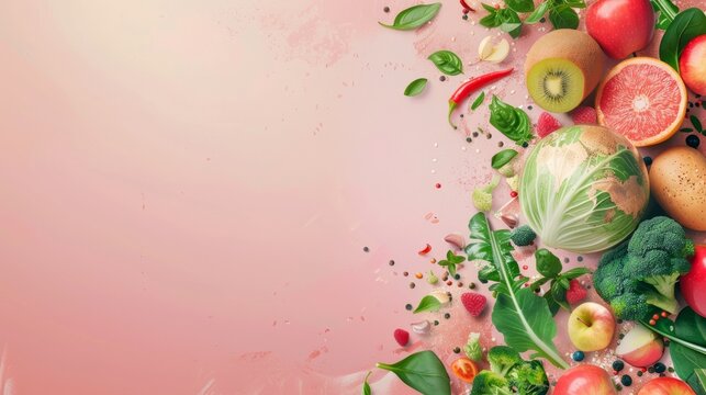 Illustration World vegan day concept. Healthy and organic fruits and vegetables. Generative ai