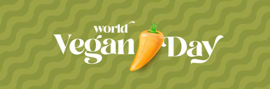 World Vegan day 1 November banner design template with carrot. Vegan day green geometric banner with text and vegetable. Go Vegan. Green abstract geometric background.