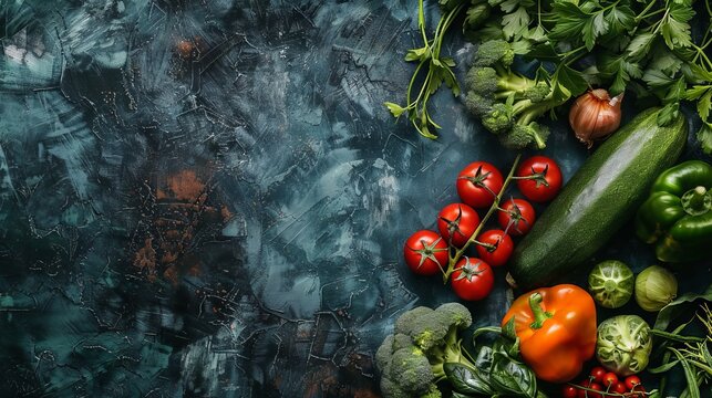World vegan day celebration background with various green vegetables