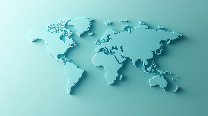 3D world map rendered on a soft blue gradient background. The sleek design highlights global connectivity and simplicity, perfect for modern and clean visuals