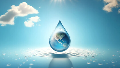 World Water day concept with world in clean water drop on and fresh blue water ripples design, Environment save and ecology theme concept ,Elements of this image furnished by NASA