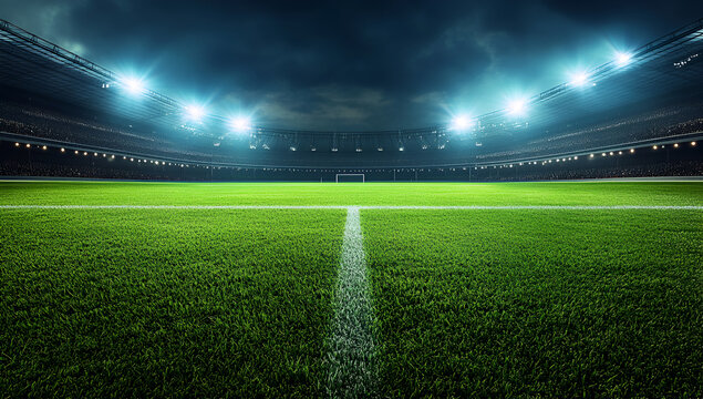 2.	Dramatic Night View of a Soccer Field with Stadium Lights