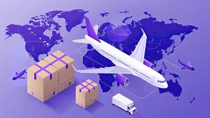 logistics transport import export shipping service Customers order things from via internet International shipping online Air courier Cargo plane boxes packaging freight forwarder to worldwid