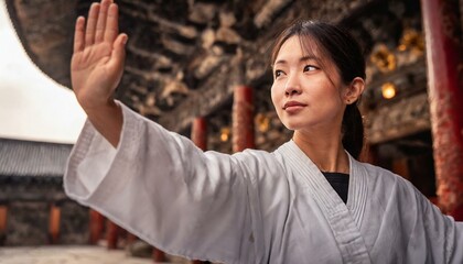 A dark-skinned woman in an armor-inspired costume and chainmail, modeling at a fashion show, strutting down the runway in medieval attire, in castlecore style, generated by AI