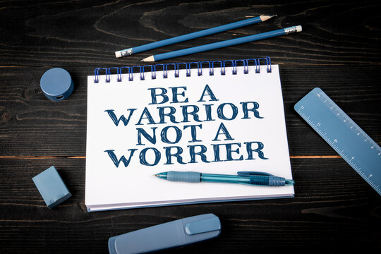 Be a warrior not a worrier. Inspirational Quote on Notepad with Stationery on Desk