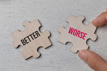 Wooden jigsaw puzzle with text BETTER and WORSE