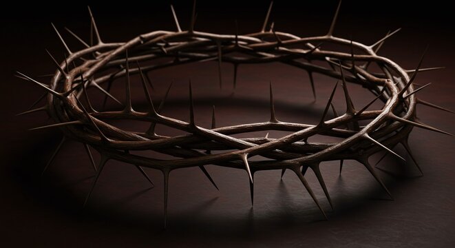 Close of a crown of thorns on a surface symbolizing Jesus Christ's sacrifice