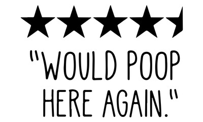 Would Poop Here Again SVG, Five Stars, Bathroom Cut File, Home Decor Saying, Wood Sign Quote, Farmhouse, Funny Silhouette Cricut, Svg files for cricut