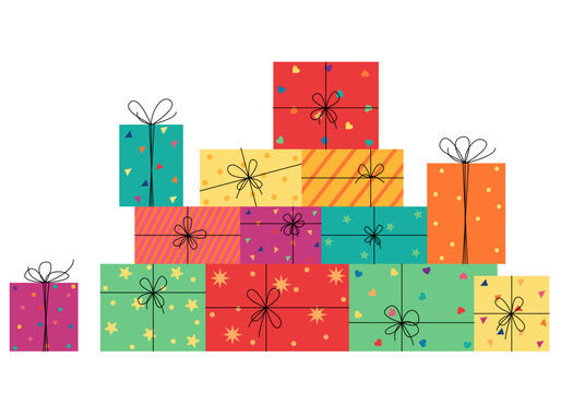 festive background lots of gift boxes with bows  birthday gifts, valentine's day, anniversary gift, new year and christmas gift boxes.