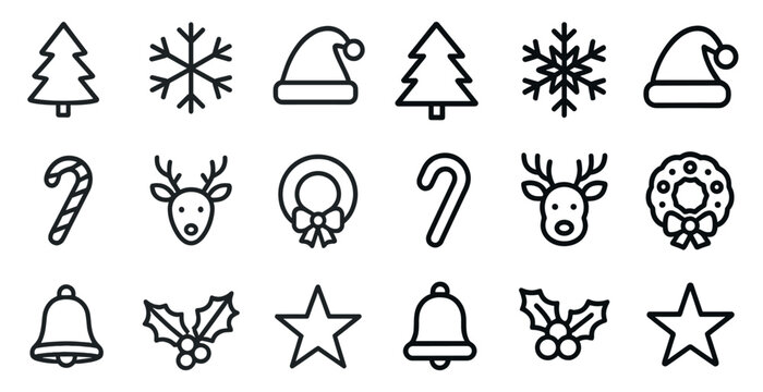 Christmas and winter outline icons set – festive, seasonal, holiday symbols