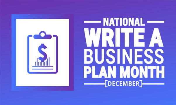 December is National Write a Business Plan Month. Holiday concept. suitable for placard, background,Greeting Card, Poster design template with text inscription, standard Social Media Post.