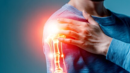a person foot pain, overlaid with a red hologram and diagram of the foot joint.