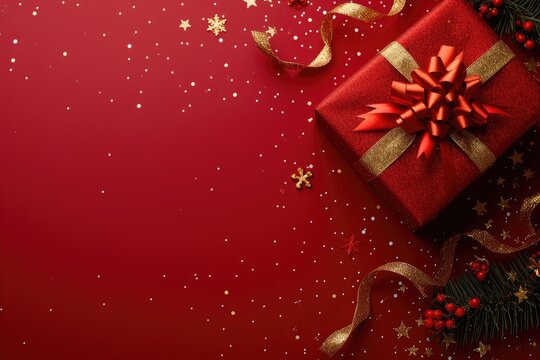 Christmas celebration background with festive decor and confetti