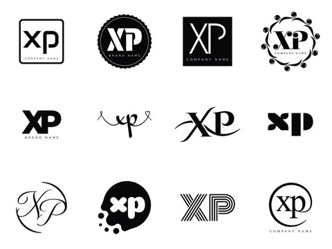 XP logo company template. Letter x and p logotype. Set different classic serif lettering and modern bold text with design elements. Initial font typography.