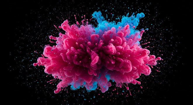 鮮やかピンク青インク爆発 闇背景 躍動感あふれる色彩 (Azayaka pink ao INKU bakuhatsu yami haikei yakudokan afureru shikisai) Translation: Vivid pink and blue ink explosion, dark background, dynamic color.. AI Generated