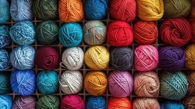 Various wool yarn and knitting needles, creative knitting hobby. Panoramic background, banner in pastel colors on pink paper.