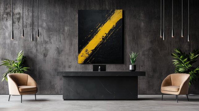 Modern Gallery Interior: Yellow Artwork Showcase, 3D Render AI Generated