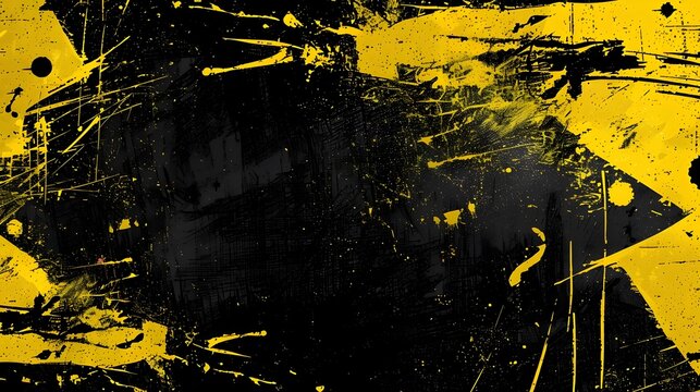 Abstract black and yellow grunge background with diagonal lines and texture.