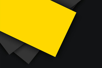 Abstract yellow and black shapes overlapping layers on black background. Vector design template for use modern cover, technology banner, business advertising, card corporate, wallpaper, brochure