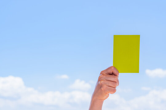 Close up of Businessman showing yellow card. Business and finance concept. Last warning before exclusion.