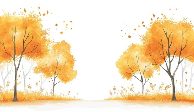 Watercolor autumn trees with a white background, a yellow color scheme