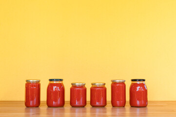 Still life bottles of Italian handmade tomato sauce passata