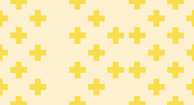 Repeating pattern of yellow crosses and dots on a white background simple and clean design style