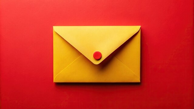 A yellow envelope with a pen and glasses rests on a coral background with green leaves