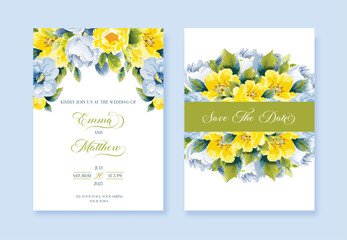 Elegant wedding invitation floral blue theme