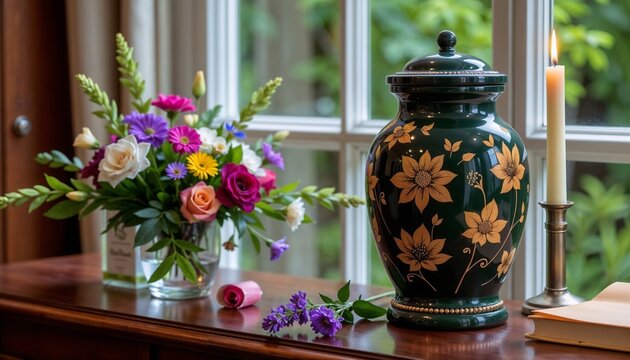 Floral memorial service invitation with elegant design