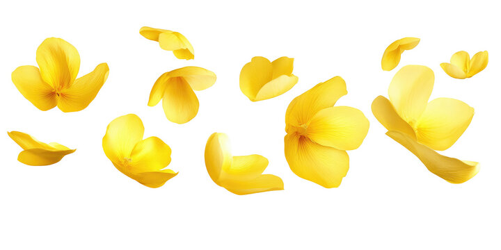 Scattered yellow flower petals isolated on black background creating a soft and elegant composition effect