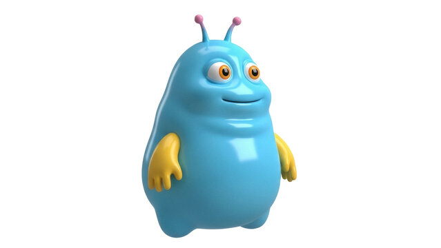 Purple alarm clock with yellow hands and feet on a white background