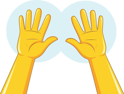 A pair of yellow hands with palms facing forward and fingers spread apart