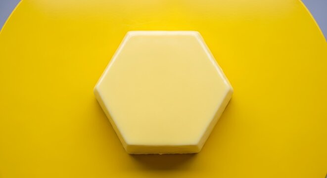 Close-up shot of a yellow hexagon shape on a matching yellow background, showing the object's form.