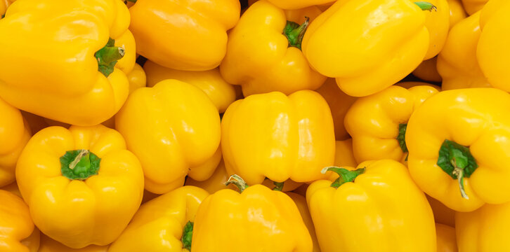 A lot of yellow pepper, texture background. Pile of fresh ripe yellow bell pepper pattern, high quality photo