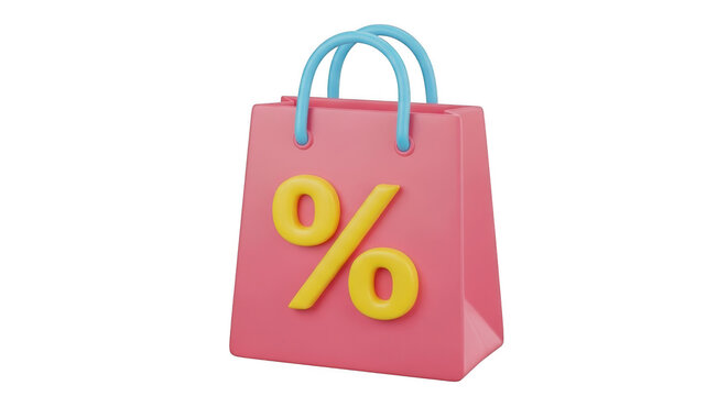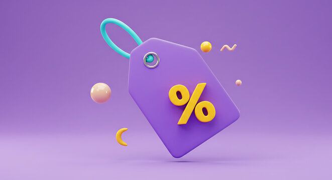 3d purple tag with yellow percentage symbol for discounts and sales promotions