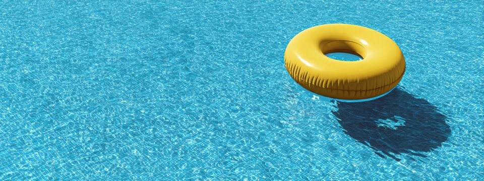 Yellow pool float, ring floating in a refreshing blue swimming pool.